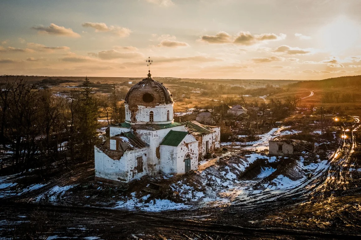 Hàng trăm di sản UNESCO đã bị hư hại trong cuộc xâm lược toàn diện kéo dài ba năm, bao gồm cả nhà thờ này ở làng Mala Komyshuvakha, vùng Kharkiv.