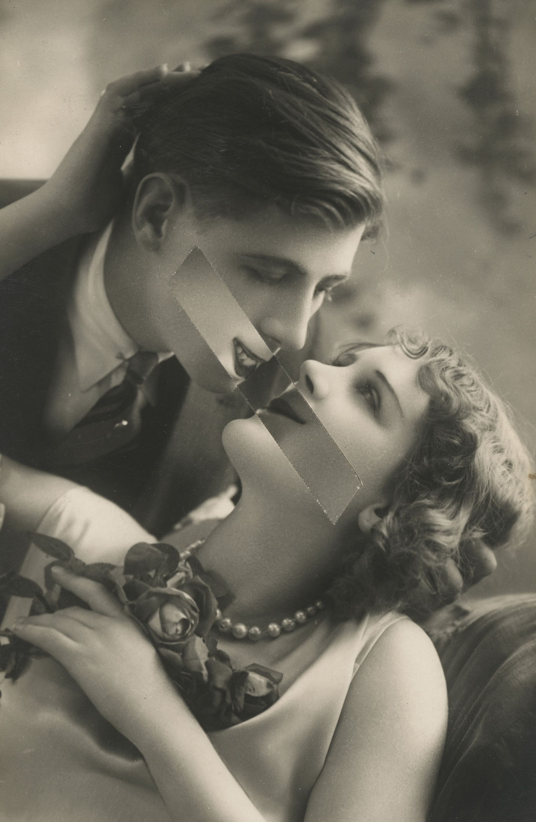 Đối với nghệ sĩ người Nhật Kensuke Koike, mỗi bức ảnh là một câu đố. Trong quá trình sáng tác, Koike sử dụng các bức chân dung cổ điển từ các cửa hàng đồ cũ và chợ trời – phần lớn được ông sưu tầm tại Venice, nơi ông hiện đang sinh sống – rồi cẩn thận cắt ghép bằng lưỡi dao nhỏ để sắp xếp lại các chi tiết, tạo nên những kết quả vừa dí dỏm vừa đầy tính siêu thực. Một chiếc đầu có thể bị tách rời và đặt cạnh chủ thể, hoặc các đường nét trên khuôn mặt bị bóp méo, xáo trộn: Khuôn mặt trở thành những mô hình hình thoi, vòng xoáy hoặc cánh cổng; các cặp đôi nhìn nhau có thể bị tráo đổi ánh mắt. Quy tắc duy nhất mà Koike tuân thủ là “không thêm, không bớt” – tức ông phải sử dụng toàn bộ các phần của bức ảnh gốc mà không bổ sung yếu tố mới nào.