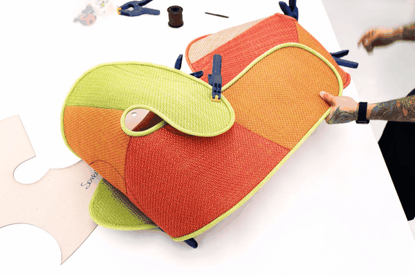 Để tạo ra bộ sưu tập, NTK Oki Sato khéo léo sử dụng và kết hợp vải lưới Maris với nhiều màu sắc khác nhau, do Paola Lenti phát triển. Vải Maris được làm từ 100% polypropylene, có khả năng tái chế và chống thấm, với hơn 180 màu sắc, đồng thời có khả năng chịu nhiệt tốt. Các lớp vải này có thể dễ dàng kết nối với nhau mà không cần chỉ khâu hay chất kết dính. Những thử nghiệm sâu hơn chỉ ra rằng, bằng cách điều chỉnh nhiệt độ và thời gian gia nhiệt, các mảng vải có thể được làm cứng, tăng độ bền và cho phép ánh sáng xuyên qua nhờ vào độ mờ và trong suốt đan xen của vật liệu.