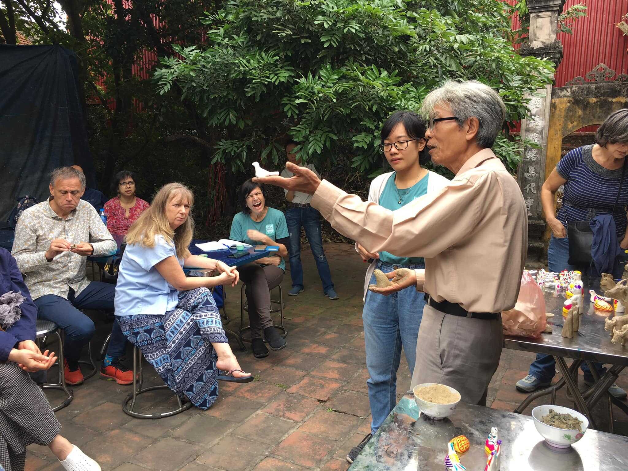 Nghệ nhân Giáp giới thiệu cho phóng viên về phỗng đất