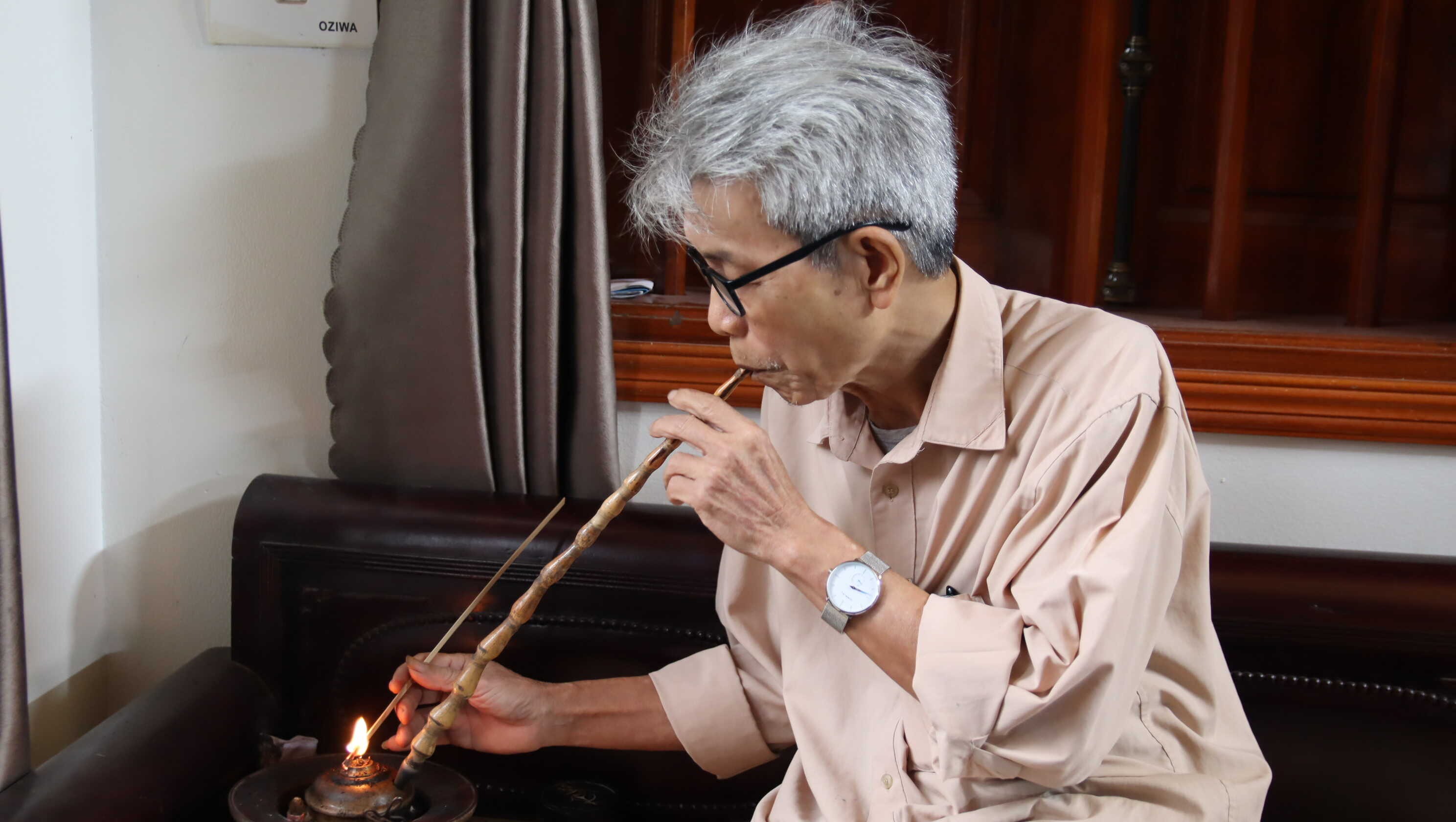 Ông vừa kể lại chuyện nghề vừa châm điếu bát cổ.