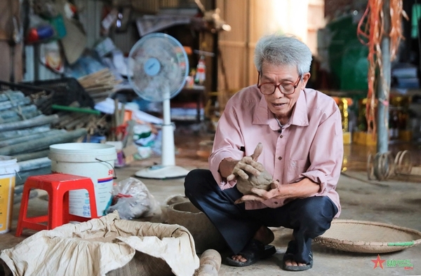 Nghệ nhân Phùng Đình Đạt tỉ mỉ làm mềm đất nặn phỗng
