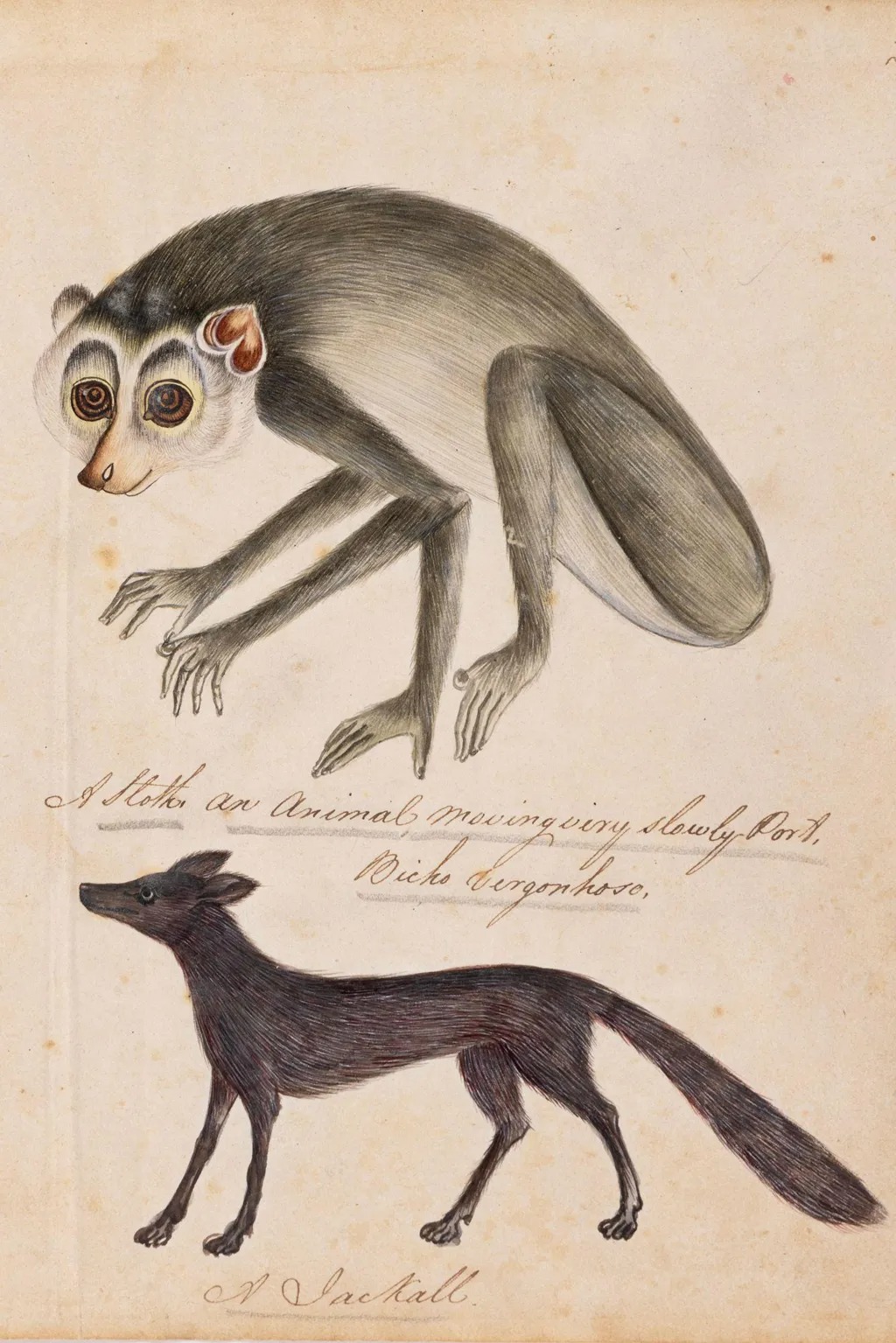 Con lười và chó rừng, màu nước và mực trên giấy, 1821