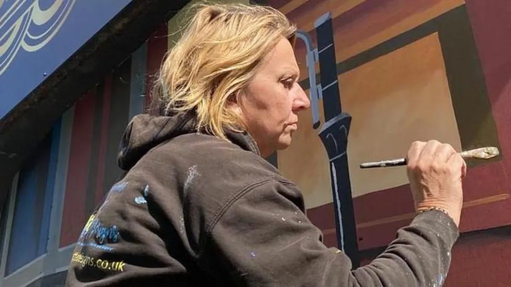 Nữ họa sĩ tranh tường Sarah Hodgkins, hiện đang sinh sống gần Milton Keynes, đã vẽ lại mặt tiền theo phong cách Art Deco của một rạp chiếu phim cũ với mong muốn truyền tải thông điệp về hy vọng, màu sắc và văn hóa địa phương thông qua nghệ thuật.