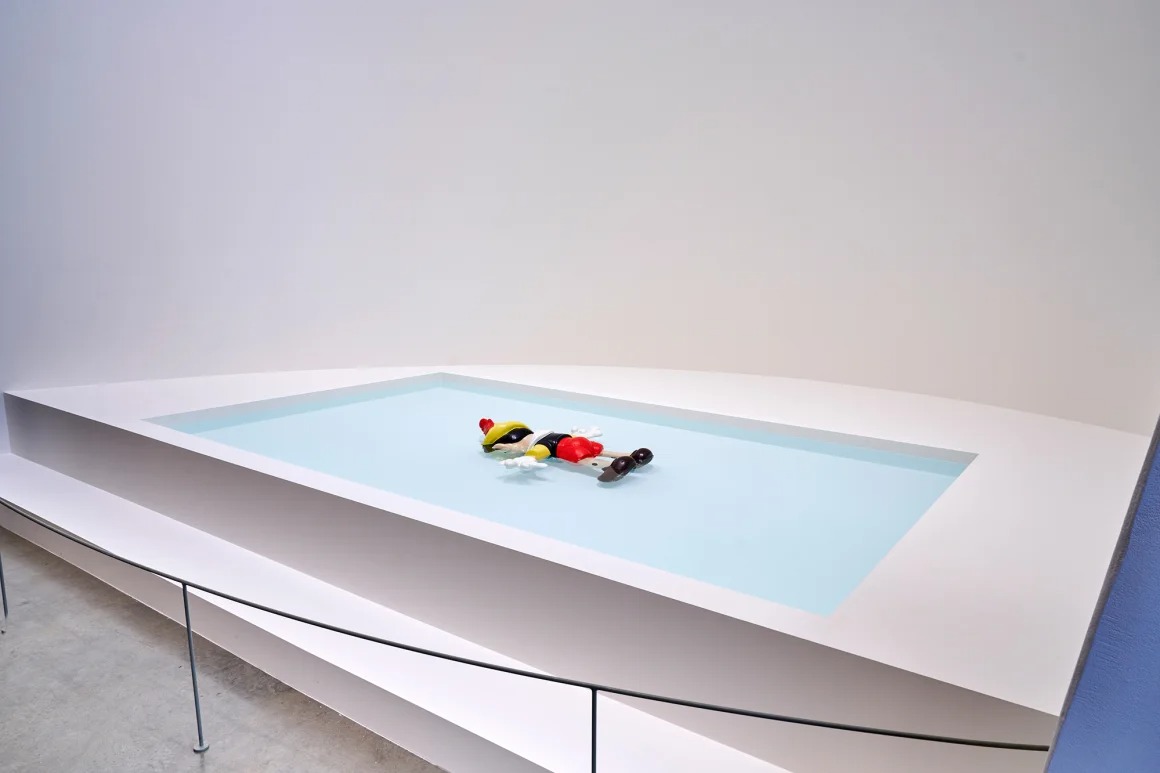 Tác phẩm hài hước cay đắng "Daddy, Daddy" của Maurizio Cattelan có hình ảnh chú bé Pinnochio nằm úp mặt xuống hồ bơi.