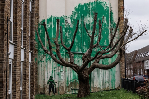 Họa sĩ Banksy, người vẫn giữ bí mật danh tính, thường bình luận về các vấn đề thời sự thông qua nghệ thuật của mình. James Pearl, từ chương trình "The Banksy Story" của BBC Radio 4, cho biết về bức tranh tường vẽ cây, "Thông điệp là rất rõ ràng. Thiên nhiên đang đấu tranh và chúng ta phải giúp chúng phát triển trở lại".
