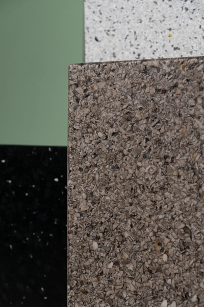 Đáp lại thách thức đó, họ phát triển Polygood - dòng vật liệu bề mặt làm từ 100% nhựa polystyrene tái chế, mang vẻ đẹp hiện đại gợi liên tưởng đến đá marble, terrazzo và nhiều chất liệu truyền thống khác. Những tấm panel Polygood không chỉ mở ra khả năng ứng dụng quy mô lớn cho thiết kế và kiến trúc, mà còn tạo nên những tác phẩm có chiều sâu thẩm mỹ và công năng bền vững.