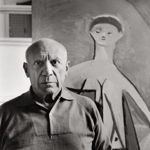 ( Pablo Picasso in his mansion in Cannes, France, 1957)
