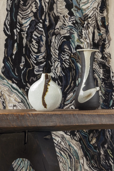 Bên cạnh tác phẩm mới, triển lãm còn giới thiệu một bộ sưu tập gốm của Janet Leach – nghệ nhân gốm Anh hoạt động trong những năm 1960–1970 – được tuyển chọn bởi Willoughby Gerrish. Các lớp men gốm với độ sần tự nhiên hòa quyện hoàn hảo với chất vải dệt, vỏ cây và thớ gỗ xung quanh, tạo nên một không gian thị giác đồng điệu.