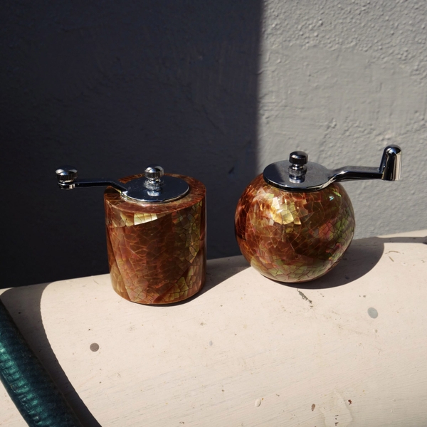 Bộ dụng cụ đựng muối và tiêu của Meyte Chan nằm trong bộ sưu tập mang tên Pigeons: A Meditation on the Shells of Society. Các vật dụng trong bộ sưu tập sử dụng vỏ sò capiz – chất liệu truyền thống gắn bó với gia đình cô – để nói về sự bền bỉ của các yếu tố bị xem nhẹ trong xã hội, giống như những chú chim bồ câu giữa đô thị.