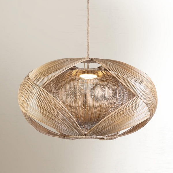 Chiếc đèn Naked Obi của Ina Gaston – giám đốc sáng tạo của Hacienda Crafts Company – là sự giao thoa giữa thủ công bản địa và thẩm mỹ Nhật Bản. Được làm từ sợi cọ buri và vỏ chuối khô bởi cộng đồng thợ thủ công địa phương, chiếc đèn như lời tri ân đến thiên nhiên và nghệ thuật truyền thống.