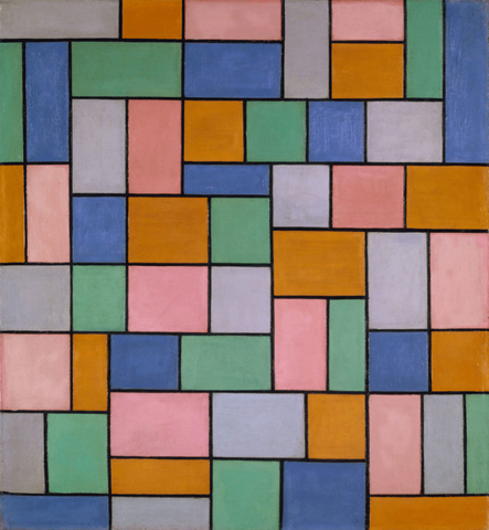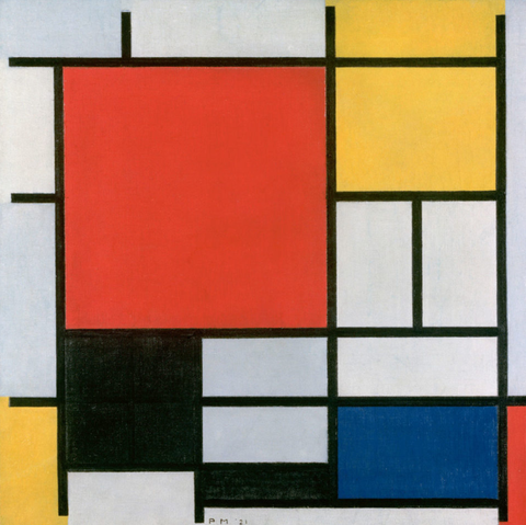 ( Piet Mondrian, Bố cục I với đỏ, đen, xanh lam và vàng, 1921 )