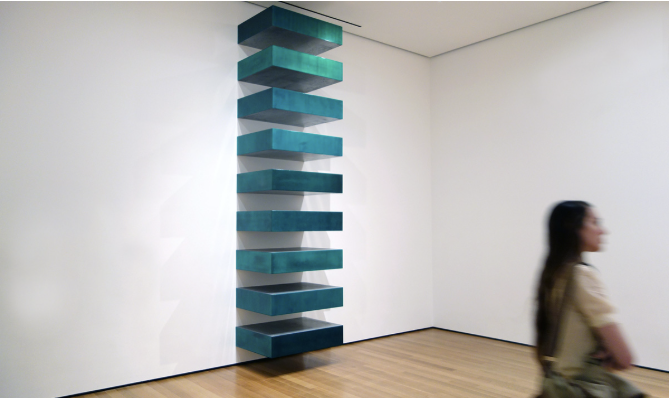 Donald Judd là một trong những kiến trúc sư triết học của chủ nghĩa tối giản. Từ bỏ hội họa mà ông cho là “mặt phẳng hình chữ nhật đặt lên tường,” Judd tìm đến điêu khắc như một cách để giải phóng hình thức ra khỏi ảo giác thị giác. Các “hộp treo” lặp lại theo tỷ lệ chính xác của ông không mang cảm xúc – nhưng chính xác đến mức buộc người xem phải chú ý, suy ngẫm và đối diện trực tiếp với hình khối như nó vốn là. Trong Specific Objects (1964), ông đặt nền móng cho một nghệ thuật không cần đại diện – chỉ cần hiện hữu.