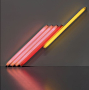 Dan Flavin đã biến ánh sáng nhân tạo thành chất liệu của sự chiêm nghiệm. Sử dụng đèn huỳnh quang thương mại – những thứ tầm thường nhất trong thế giới hiện đại – ông tạo ra những sắp đặt làm lóa mắt thị giác và đánh thức cảm xúc không lời. Những tác phẩm như Untitled (to Fredericka and Ian) không “vẽ bằng ánh sáng” – chúng là ánh sáng. Trong một phòng trưng bày bị nhuộm tím bởi đèn cực tím hay một góc tường được nhuốm xanh lạnh, Flavin không kể chuyện – ông dựng nên không gian để thị giác bước vào một vùng im lặng lấp lánh.