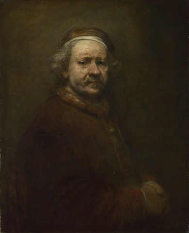 Khi bước vào tuổi trung niên, Rembrandt đã miêu tả bản thân một cách tự nhiên và chân thực, với những nếp nhăn và mái tóc bạc. Trường phái Hiện thực này mở rộng cho việc khắc họa các trạng thái tâm lý của nghệ sĩ: Một ví dụ nổi bật từ năm 1659, hiện đang ở Phòng trưng bày Nghệ thuật Quốc gia của Washington, D.C., được vẽ sau khi ông bị tổn thất lớn về tài chính, sự căng thẳng dường như hằn sâu trên khuôn mặt ông. Vào năm 1669, trong những tháng trước khi ông qua đời ở tuổi 63, ông đã tạo ra không dưới bốn bức chân dung tự họa, trong đó vị Bậc thầy này già đi với hình ảnh những lọn tóc bạc mỏng, đôi mắt sâu và làn da mòn.