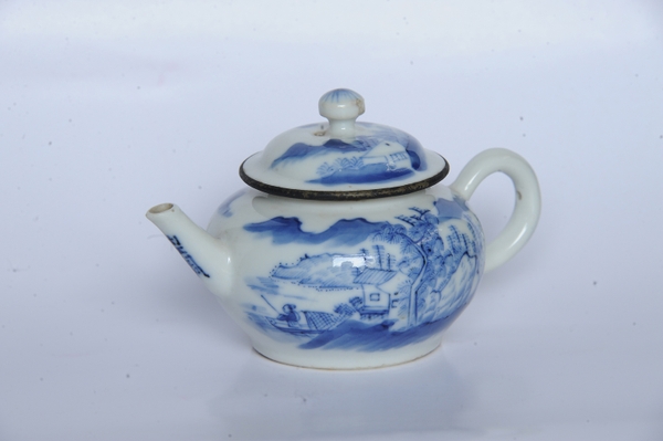 Ấm trà ký kiểu thời Minh Mạng, trang trí đề tài Thái Công Điếu Vị
