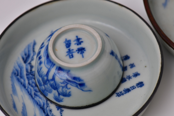Bộ đĩa, chén trà hiệu đề Thư Đới Lưu Hương.