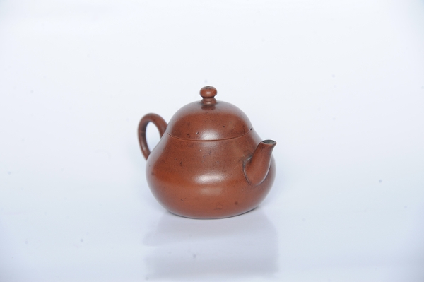 Ấm Nghi Hưng, độc ẩm, màu gan gà, hiệu đề Thế Đức.