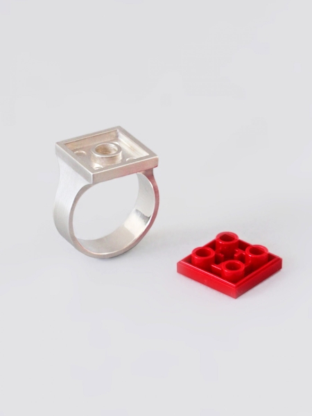 Được chế tác từ bạc tái chế, nhẫn gồm một vòng trơn với mặt trung tâm mô phỏng chính xác kích thước và hình dạng của miếng Lego. Người dùng có thể để nhẫn trơn, hoặc kết hợp nhiều mảnh Lego khác nhau – từ ô vuông, hình chữ thập, chữ nhật cho đến tròn – để sáng tạo nên diện mạo mới mỗi ngày.