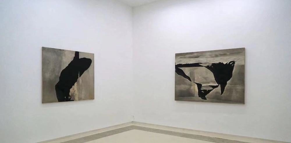 Installation image of He Jian’s paper landscape collages at Pifo Gallery, 2018, courtesy Pifo Gallery