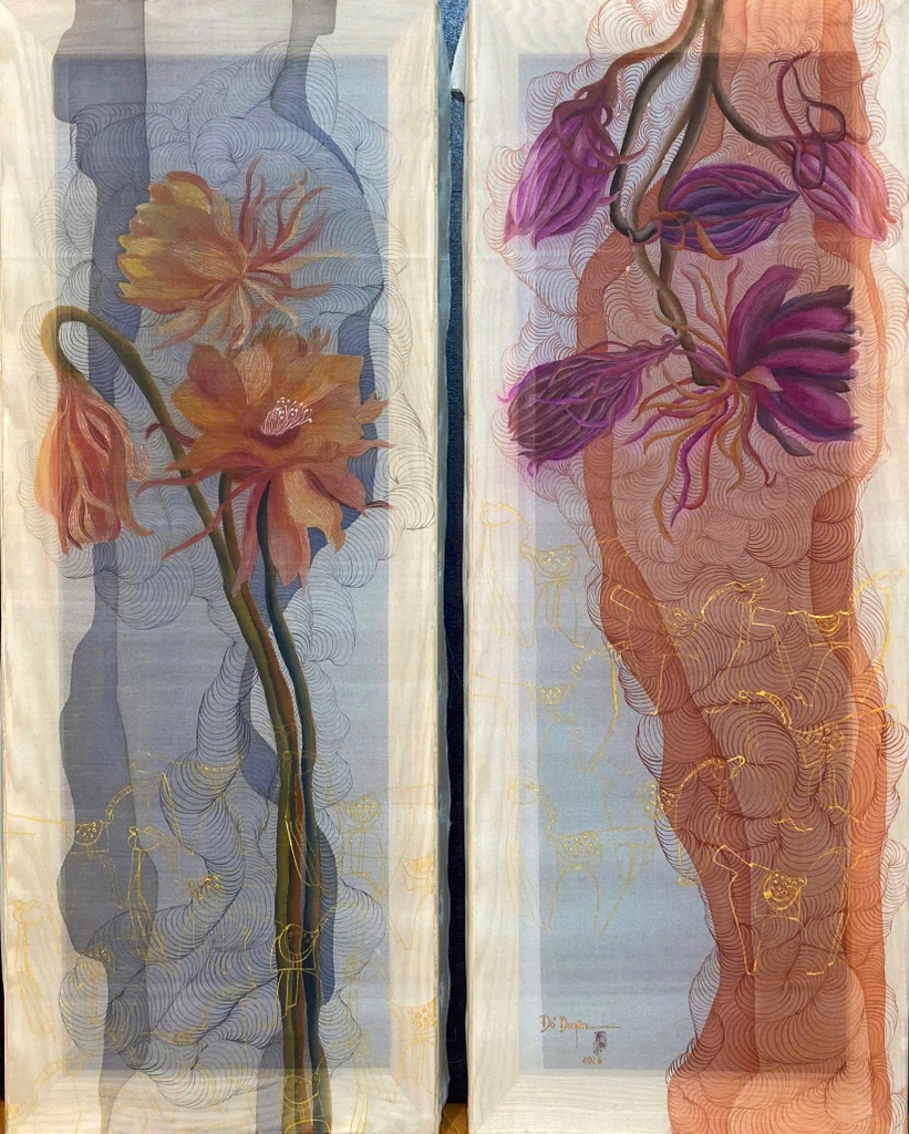 Tranh lụa "Hoa Quỳnh" (bộ 2 bức) - họa sĩ Đỗ Duyên