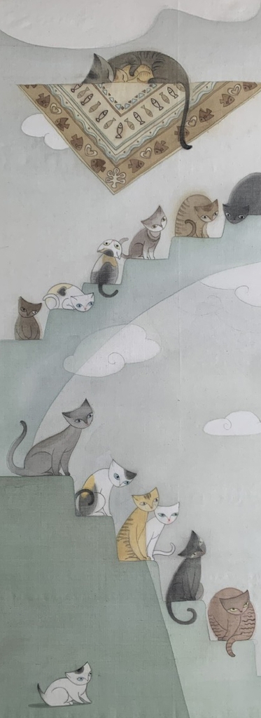 Tranh lụa "Thiên đàng mèo" - Hoạ sỹ Nguyễn Phương Hoa