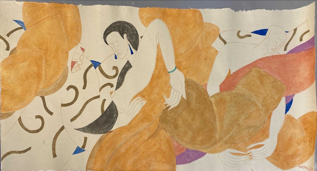 Tranh màu tự nhiên trên giấy dó "Đối diện" - Hoạ sĩ Phan Cẩm Thượng