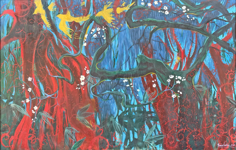 (Tranh sơn trên toan "Tự nhiên"- Họa sĩ Bảo Châu)