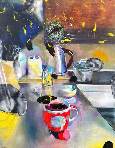 (Tranh sơn dầu "Vũ trụ trong bếp"- Họa sĩ Thùy Dương)