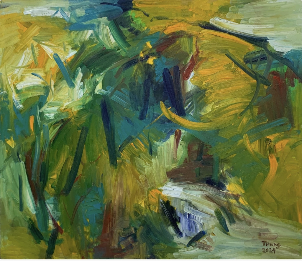 Tranh sơn dầu "Dấu vết xanh và vàng" - Hoạ sĩ Nguyễn Quang Trung