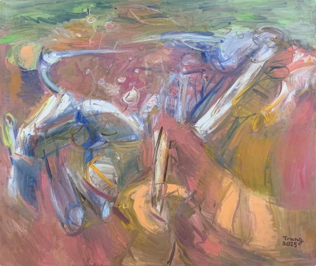 Tranh sơn dầu "Lễ hội" - Hoạ sĩ Nguyễn Quang Trung