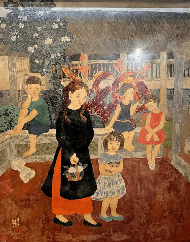 Tranh sơn mài "Góc vườn" - Họa sĩ Đỗ Thị Kim Đoan