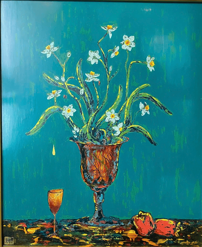 Tranh sơn mài "Hoa thủy tiên" - Họa sĩ Đinh Thế Huy