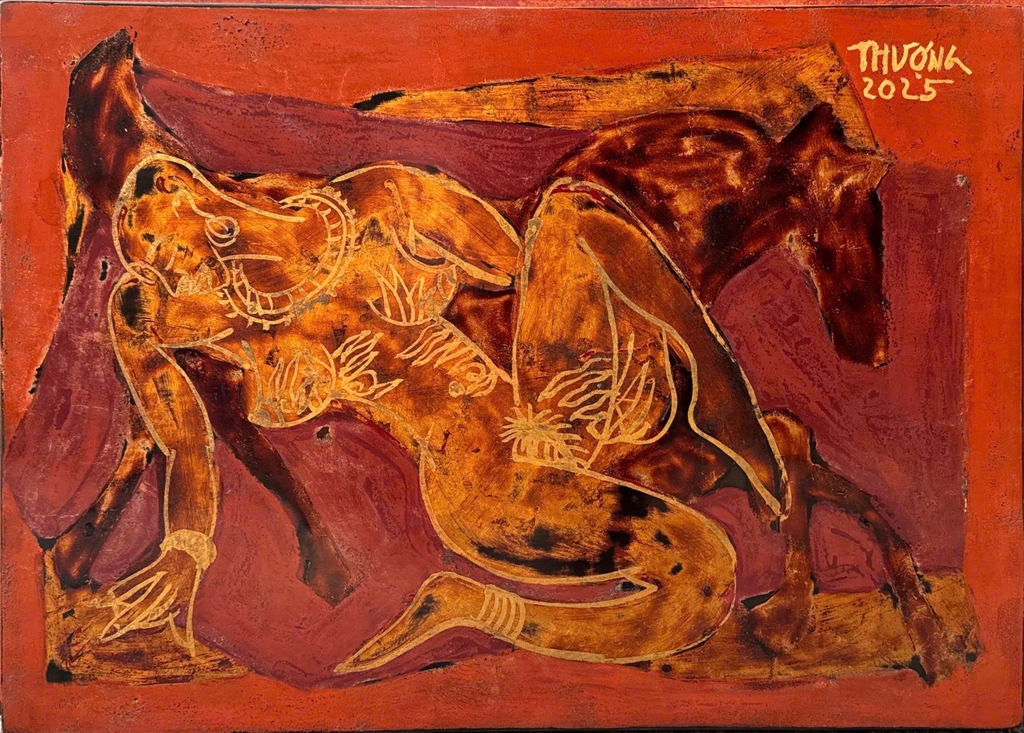 Tranh sơn mài "Ngựa hoang" - Họa sĩ Phan Cẩm Thượng