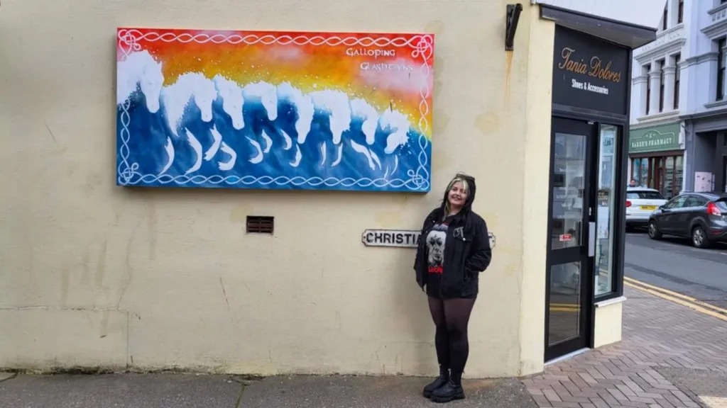 Bên ngoài một cửa hàng giày ở phố Christian, họa sĩ địa phương Marianne Hatchard đã thực hiện tác phẩm “Galloping Glashtyns” (tạm dịch: Những chú Glashtyn phi nước đại), lấy cảm hứng từ sinh vật huyền thoại nửa người nửa ngựa trong truyện dân gian Manx, luôn xuất hiện cùng những đợt sóng mạnh của đảo. “Đây là cách tôi tri ân văn hóa độc đáo của đảo Man,” bà nói. Đây cũng là một trong những ví dụ cho tranh trừu tượng dân gian mang giá trị kể chuyện.
