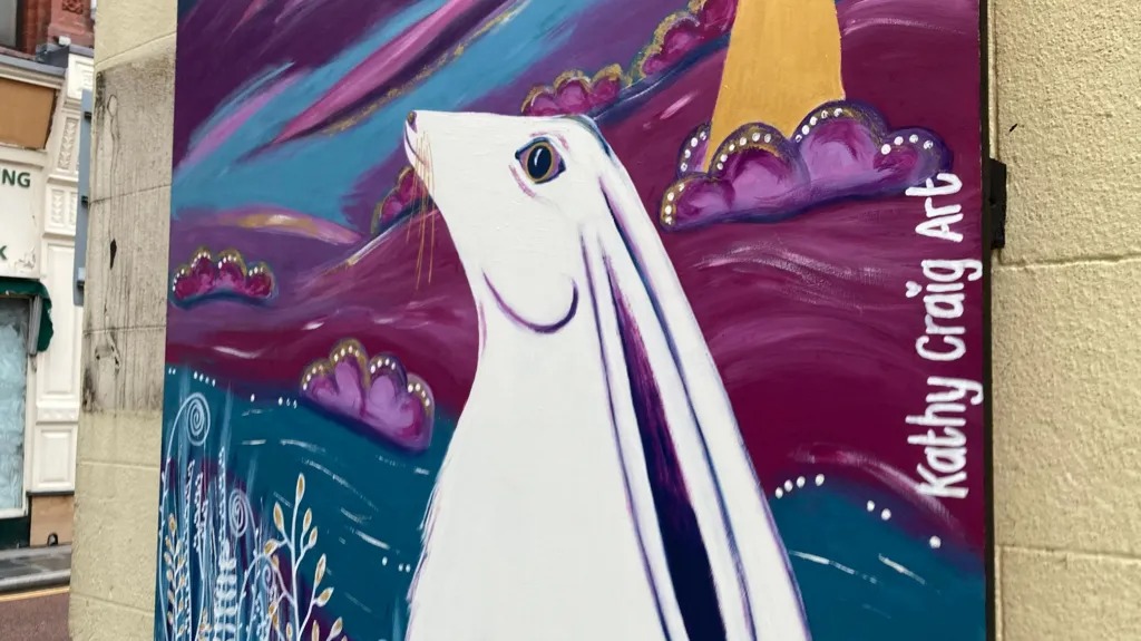 Một ví dụ điển hình là tác phẩm “Moon-Gazing Hare” (tạm dịch: Thỏ nhìn trăng) của họa sĩ Kathy Craig, được trưng bày trên tường một quán cà phê tại đường Cannell’s Lane. Bà chia sẻ rằng cảm xúc khi được thấy tác phẩm ngoài đời là điều vô cùng “choáng ngợp”.