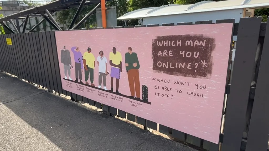 Loạt tranh tường không chỉ mang tính nghệ thuật cộng đồng mà còn đóng vai trò như lời chất vấn. Một bức tranh hỏi: “Bạn là người đàn ông nào trên mạng?” và đưa ra nhiều lựa chọn: người khởi xướng, người lan truyền, kẻ cười đùa, kẻ làm ngơ, hay người đứng ra báo cáo hành vi sai trái.