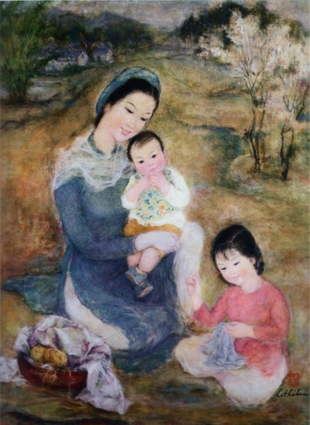 “Người mẹ và đứa trẻ ngồi trên cỏ” - Lê Thị Lựu
