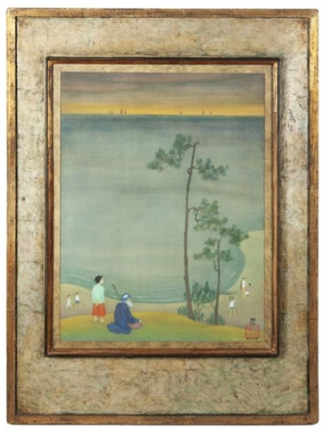 Còn tác phẩm của Lê Thị Lựu mang tên “Le Musicien Traditionnel” (Nhạc sĩ truyền thống) (1960-1970), khổ 35x45 cm, mực và màu trên lụa.