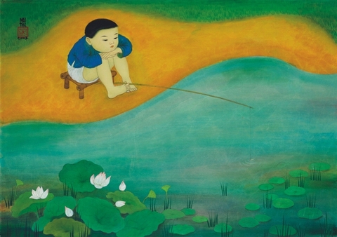 "Child fishing by the lake" (Đứa trẻ câu cá bên hồ) - Mai Trung Thứ