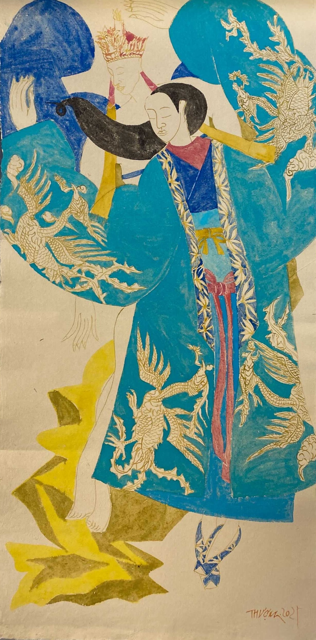 Tác phẩm "Quận chúa áo xanh"-Phan Cẩm Thượng, màu tự nhiên trên giấy dó