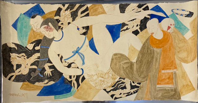 Tác phẩm "Con rồng"- Phan Cẩm Thượng, màu tự nhiên trên giấy dó