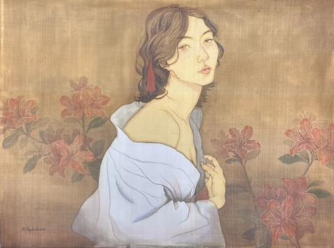 Tác phẩm "Thiếu nữ và hoa đỗ quyên" - Họa sĩ Nguyễn Duy Anh
