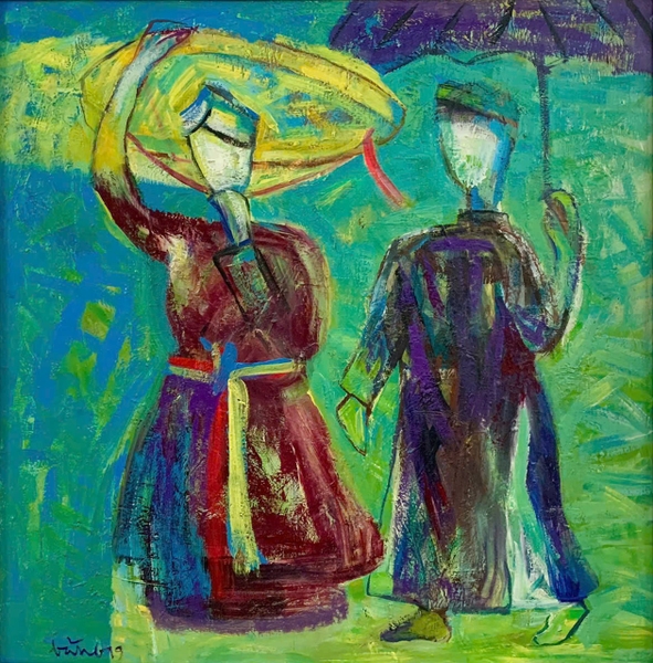 Không phải ngẫu nhiên mà nhiều người ví tranh Đỗ Bảng như "điệu quan họ bằng màu sắc". Bởi cũng như quan họ, tranh ông không phải để ngắm qua, mà để sống cùng – lắng nghe, gợi tưởng và cảm nhận từng hồi ức len nhẹ vào tâm trí.