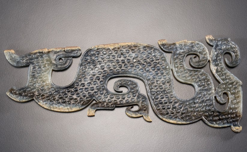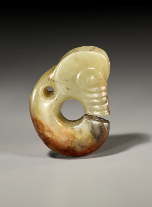 Một con lợn rồng bằng ngọc bích màu xanh xám nhạt và đỏ tía rất hiếm, thời kỳ đồ đá mới, văn hóa Hồng Sơn, thiên niên kỷ thứ 4-3 trước Công nguyên.