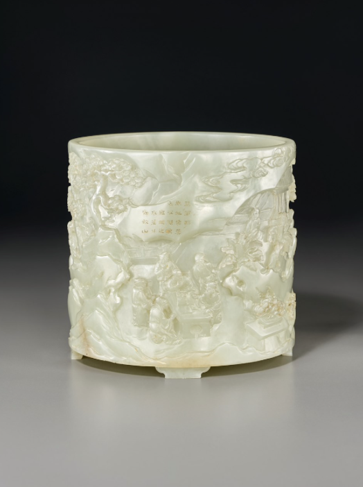 Một ví dụ tiêu biểu là chiếc bình đựng bút bằng ngọc trắng, nơi nghệ thuật chạm khắc hòa quyện với thi ca. Cảnh quan sinh động gồm các học giả, các hoạt động đời sống và hai bài thơ thời Đường – tất cả cùng kể nên một câu chuyện trọn vẹn.