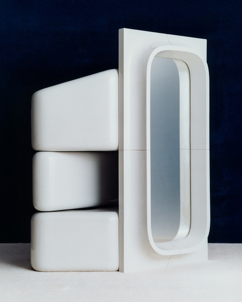 Porthole gợi liên tưởng đến các khối bê tông đúc trong kiến trúc Brutalist. Với khung gương hình chữ nhật chắc chắn, thiết kế này toát lên vẻ thô mộc nhưng tinh tế – nhờ quy trình chế tác và đánh bóng thủ công hoàn toàn. Gương không chỉ là vật dụng, mà là một yếu tố thị giác mạnh mẽ trong không gian sống.